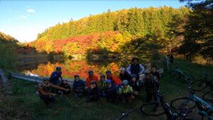 まずは諏訪湖サイクリングで自転車に慣れ、いざ有賀峠のヒルクライムへ‼みなさんe-バイクでぐんぐん登っていきました。ちょっぴり肌寒い季節でしたが、あっという間にアツアツに。今回のメインは「もみじ湖」の紅葉まつり。色が濃くとても見頃でした。塩嶺王城パークラインにある池には紅葉が湖面に写り絶景で、約55キロを完走した達成感を味わいました。